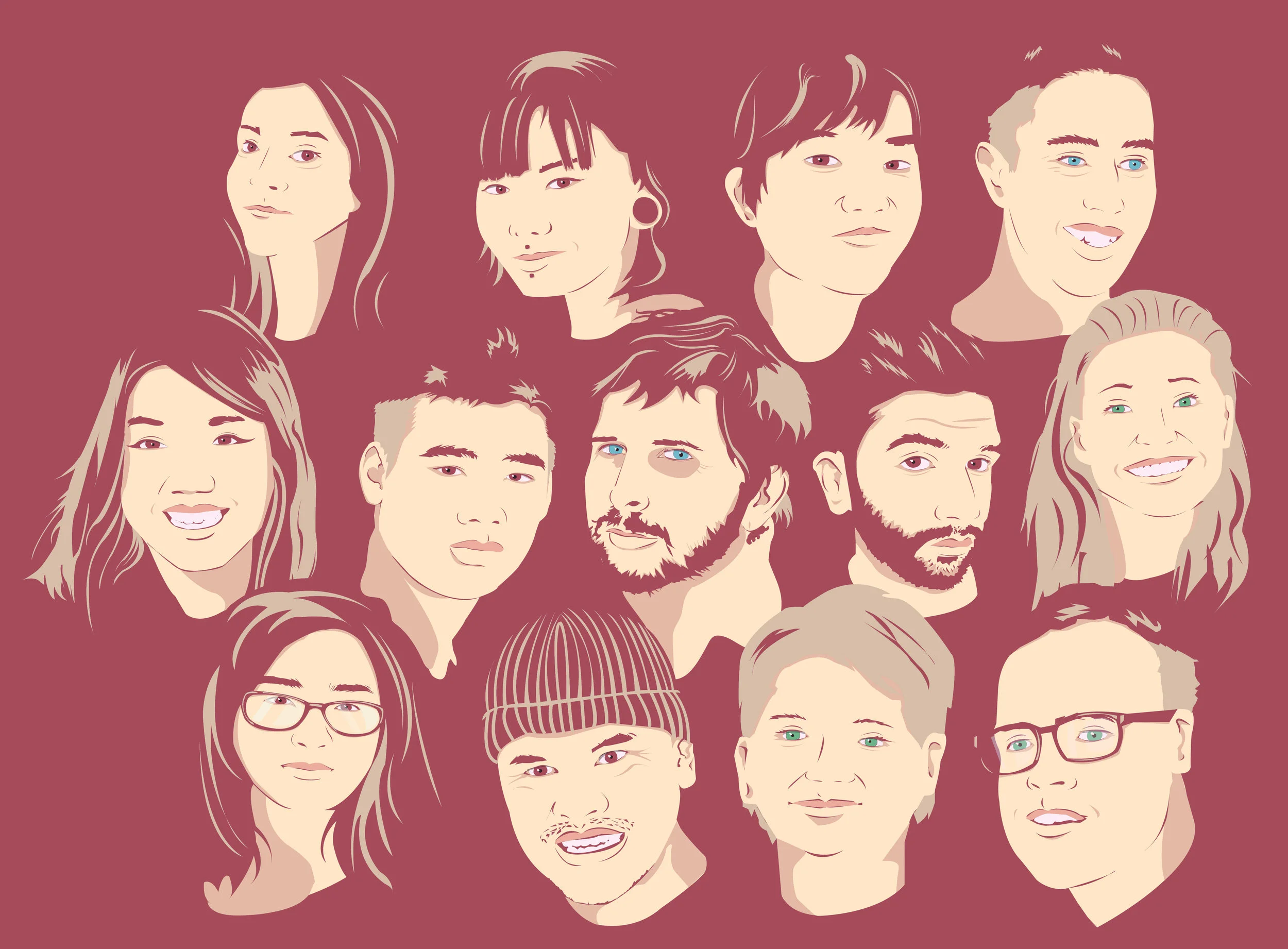 These caricatures are exaggerated versions of humans placed in negative space environments. They inhabit the world around them.